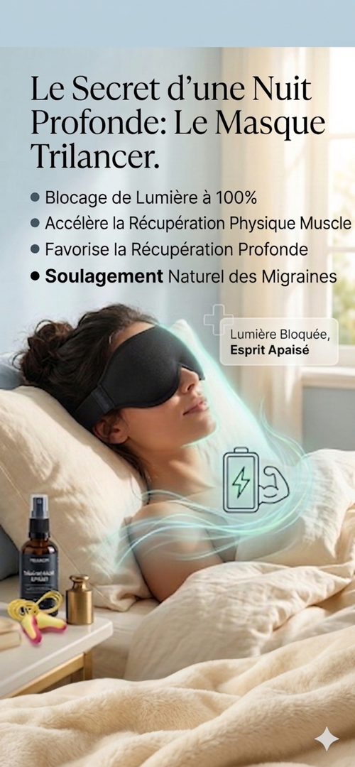 Masque de sommeil 3D – Occultant, confortable et respirant 🌑 Blocage lumière 100% · 💪 Récupération profonde · 🌿 Anti-migraine